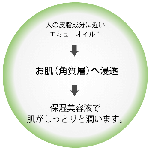 エミューオイルの脂肪酸組成は人の皮脂に極めて近いバランスで構成されているため、