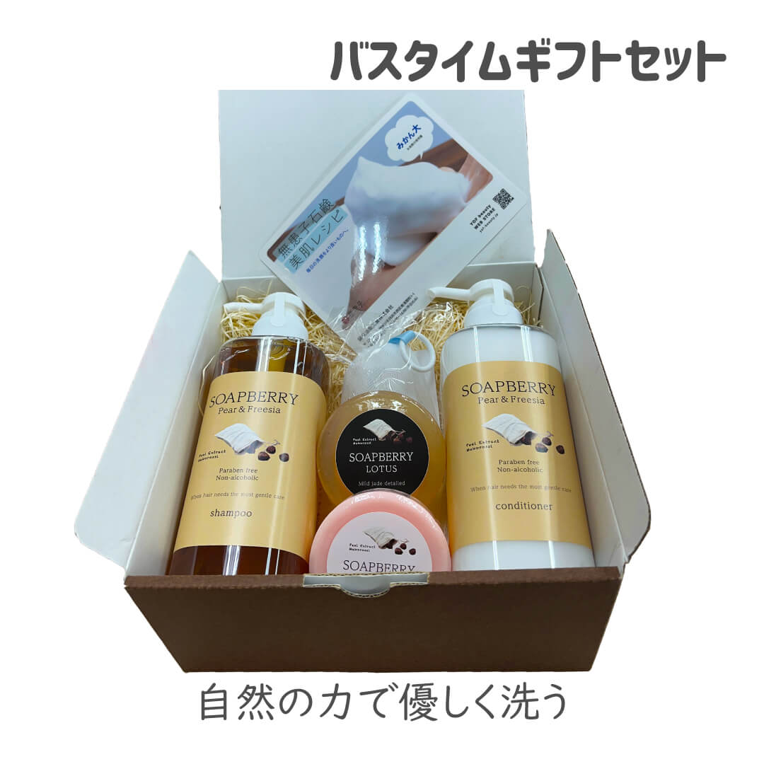 古宝ソープ・ベリー(ムクロジ)シャンプー(ペア&フリージア)の本体とつめかえのセットが新登場!傷んだ髪に潤いを与えて補修し、艶のあるしなやかな髪へ導くボタニカルシャンプー。天然の洗浄成分であるサポニンが作り出す、きめ細かな泡で頭皮や髪の汚れをやさしく洗い流します。