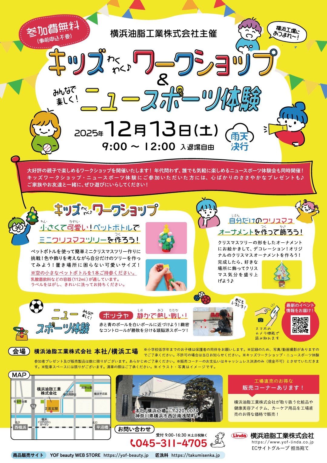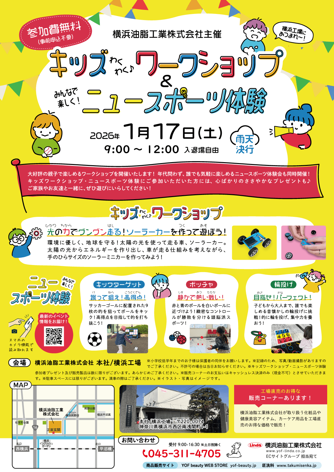 、横浜油脂工業本社/横浜工場と秦野研究工場でキッズワークショップとニュースポーツ体験会を開催いたします。